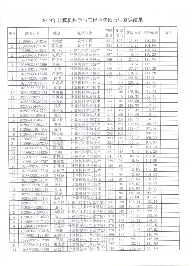 2019年香港特码王 硕士生复试结果