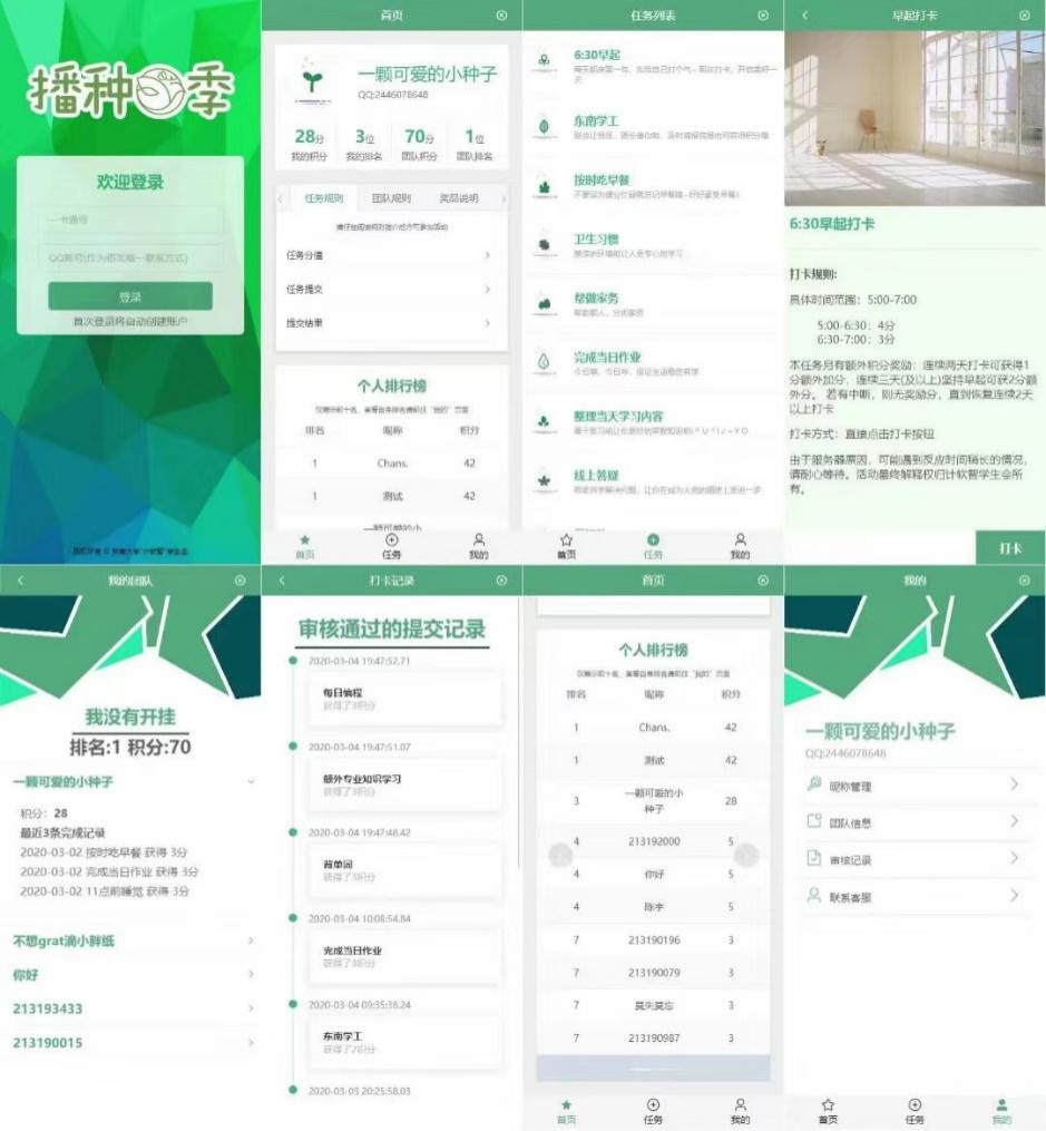 居家线上教学,多多少少会对同学们的学习生活产生影响。为了帮助同学们养成好习惯,更有效率地度过每一天,也为了大家在居家学习期间收获良好的学习效果,计软智学生会组织了“播种季”——线上打卡活动。在学生会自主开发的打卡平台上,大家可以根据自身实际完成任务列表中的任务进行打卡,获取一定积分,活动结束时积分排名靠前者将获得相应奖励。