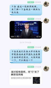 面对疫情防控的严峻形势,为使广大青年团员关注了解疫情动向、切实把思想和行动统一到习近平总书记重要指示精神和党中央决策部署上来各团支部利用线上平台,号召支部成员关注疫情最新动向,学习相关防控知识、习近平总书记关于疫情防控的系列讲话内容和“最美逆行者”抗疫先进事迹,鼓励同学们关心疫情,发表感想。有的团支部还将收集的疫情相关信息做成推送和科普视频。