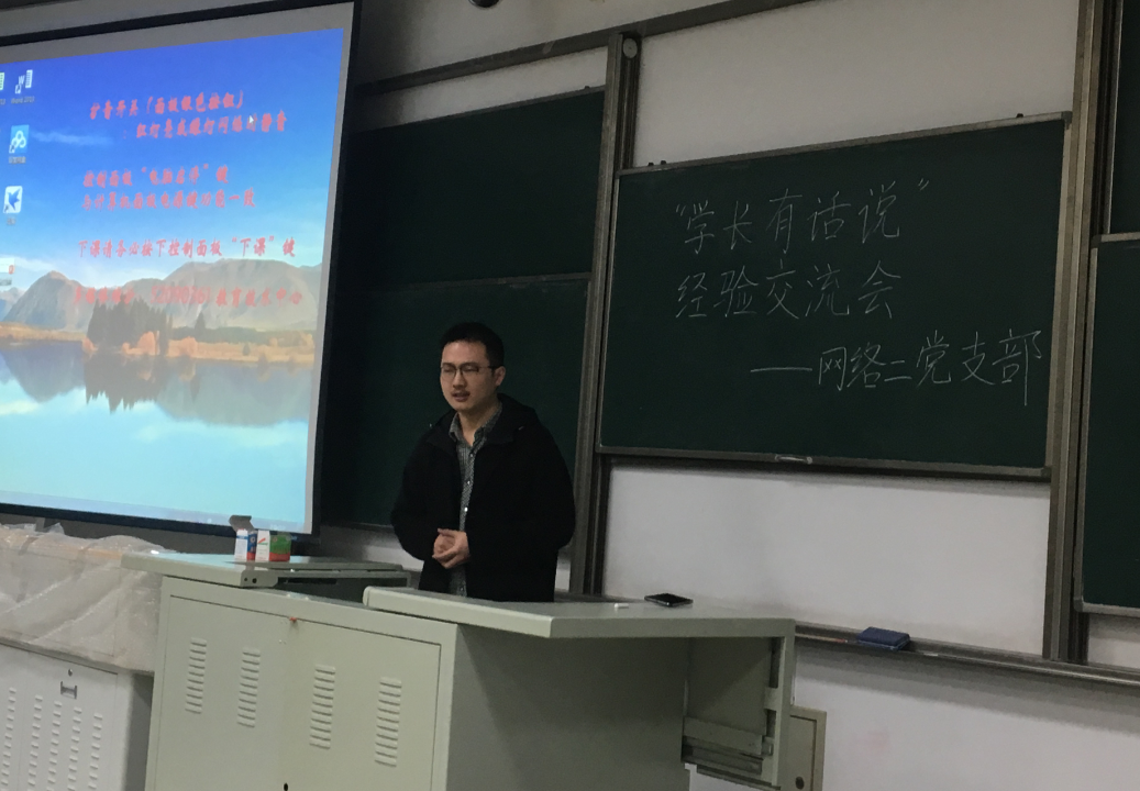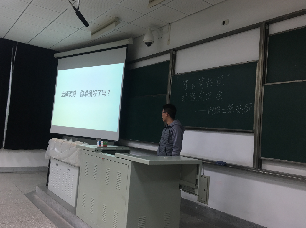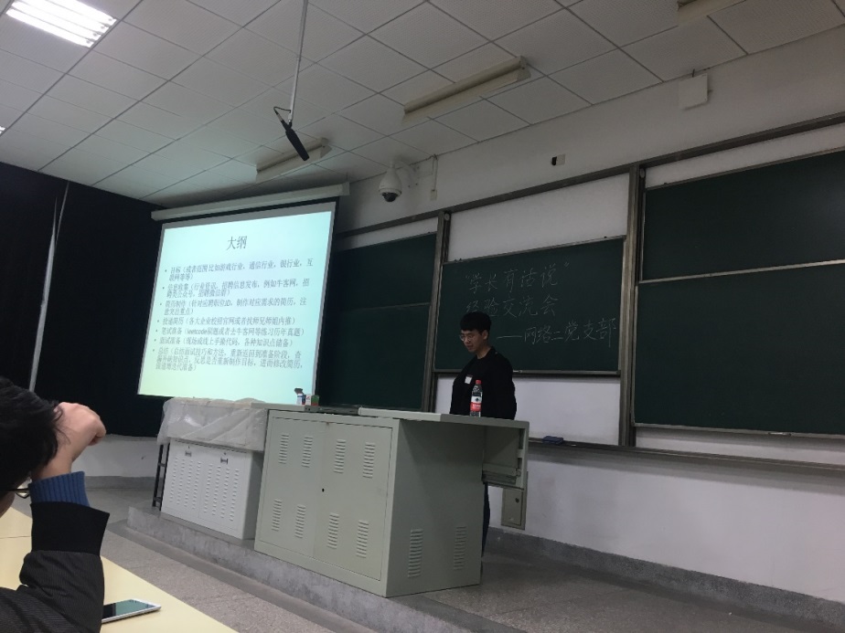 2019年3月7日,由网络二支部主办的庆祝建国七十周年系列党日活动之“学长有话说”经验交流会在纪忠楼YF101教室举行。这次活动邀请了三位嘉宾,分别是签约阿里的“offer收割机”田六合、全心备战银行并签约中国银行的樊飞以及想要读博深造的朱雪林。不仅仅是支部党员,学院的很多非党员同学也都积极参与到这次活动中。现场氛围很是热闹。