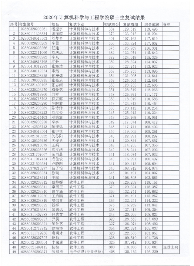 2020年香港特码王 硕士生复试结果