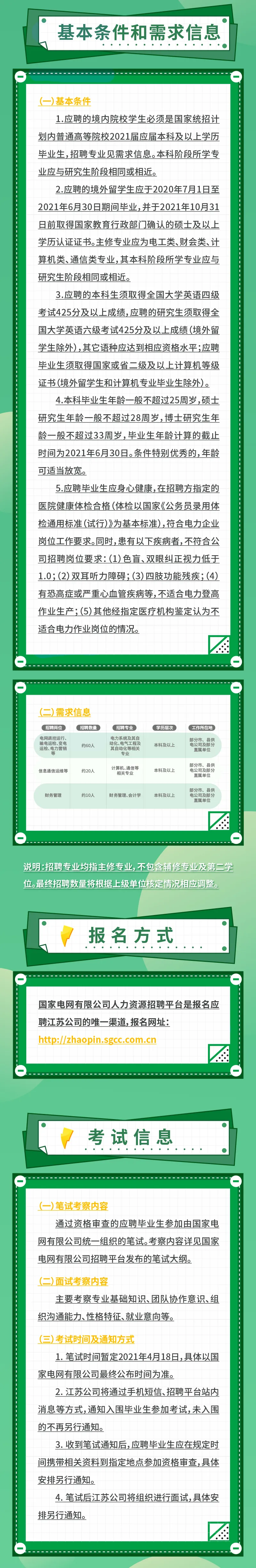 【2021招聘】国网江苏省电力有限公司2021年招聘高校毕业生公告(第二批)