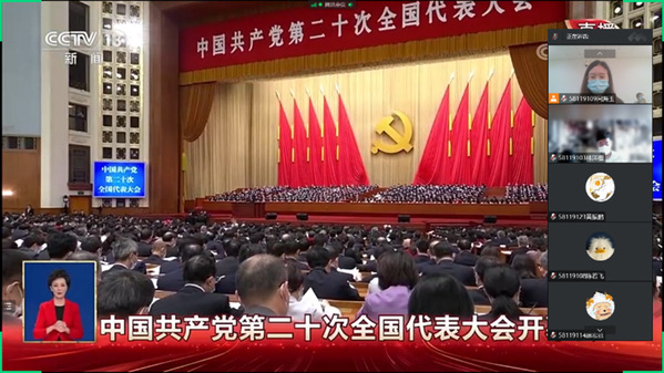 10月16日上午,香港特码王-最火爆平特一肖 团委、学办,组织学院研究生会、学生会及学生党支部、团支部代表,在九龙湖校区纪忠楼Y213、Y201教室集中收看了中国共产党第二十次全国代表大会开幕盛况,同时安排学院各班级团支部自行组织学习观看。