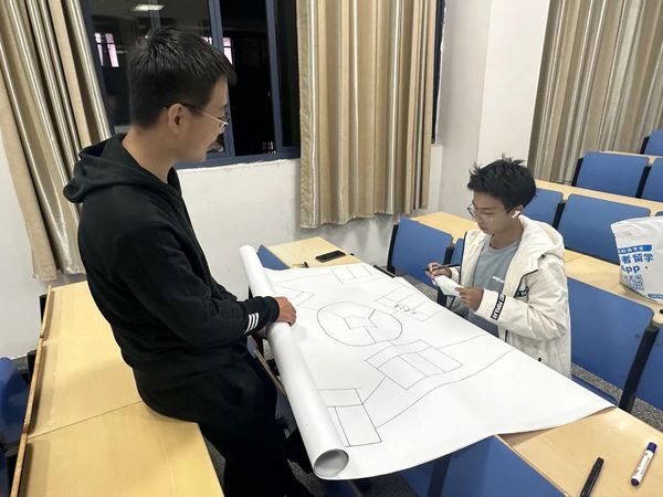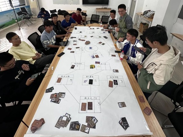 在当天下午回到九龙湖校区后,大家在计算机楼教室开展桌游活动。大家和班主任单冯老师及班导贾晟浩学长一起参与了这款自制的名为“大逃杀计划”的桌游的游玩。