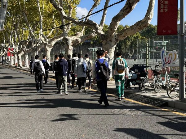 到四牌楼后,班主任单冯早已在西门等待。刚一进门,映入眼帘的就是四牌楼的操场,旁边是百年之久的体育馆,古朴的气息令同学们很轻松,洗去了一周的疲惫。