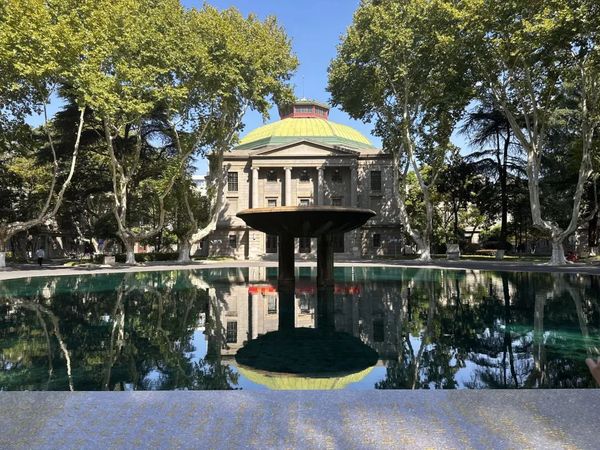 随后,在裴书记的带领下,我们参观了整个校园,四牌楼的建筑充满了历史感,不同于相对现代的九龙湖校区,四牌楼保留了部分古朴的小巷和街道,兜兜转转中,我们来到了东南大学的标志性建筑——大礼堂(校园一卡通上的图片取景即是此处),大礼堂给人一种宏大的庄严感觉,在外面就能感觉到它昔日的繁华,我们在大礼堂前的喷泉处合影留念,之后又进入了这座仍在四牌楼的同学们生活中发挥着重要作用的建筑内进行参观。裴书记说,在他们上学的时候,能够带一些零食,在大礼堂里看上一场电影,便是最大的享受;今天,虽然电影院、剧场等随处可见,但能在此地看一场表演,抑或是听一次演讲,想必也别有趣味。