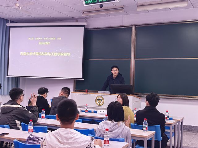 为深化产教融合、培育计算机类专业拔尖创新人才,2026年4月7日,第三届东南大学-华为ICT菁英班开班仪式在东南大学九龙湖校区圆满举行。华为江山平台人力资源部经理刘晗、公共开发eSight开发部部长唐亚、公共开发部校招经理王玮及AI专家李沛博士,学院金嘉晖副院长、吕美香老师等校企双方代表出席仪式,共同见证本届菁英班正式启航。