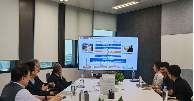 随后,学院一行移步肯斯爪特科技有限公司。随行参与交流的还有东南大学上海校友会计算机分会会长、1977级校友余永进,上海临港数创经济发展有限公司常务副总经理、1996级校友史乐平,上海创码信息科技有限公司执行董事兼总经理、1996级校友夏霓,以及上海术源信息科技有限公司副总经理、1997级校友陈祎祺。肯斯爪特由学院2011级校友巨乐乐、于乐、王清艺联合创立。三位创始人结合求学期间的创业经历,生动讲述了从校园走向职场、再从职场毅然投身创业的奋斗历程,并详细介绍了公司在社交软件、游戏、AI等业务场景中的技术布局与海外市场实践。