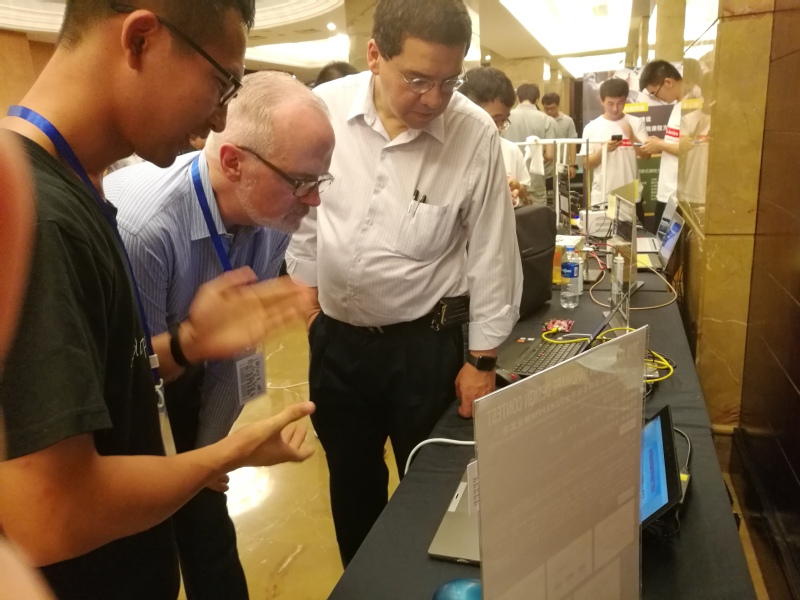 根据今年赛题的特点,东南大学香港特码王 召集了计算机系统结构、人工智能和网络安全三个方向的徐言、江仲鸣、樊飞、史娜、蒋山青五名研究生组成“东南大学九龙湖队”,由学院杨全胜副教授和吴强高工作为指导教师参加挑战赛。代表队顺利通过了预赛、复赛并进入决赛,队员们利用暑假时间,认真考虑赛题的每一个细节,从算法设计、软件编程、硬件加速、数据传输等多个方面对系统进行优化,充分发挥了团队优势。据悉,东南大学参赛队的作品得到了CCF计算机体系结构专委会众多专家学者的赞誉,在同期举行的CCF ACA2018学术会议上,队员们展出了自己的参赛作品,引起了大赛赞助商美国赛灵思公司的极大关注,赛灵思研究院高级总监Patrick Lysaght先生和赛灵思全球大学计划总监Hugo先生专程到展台前与队员们交流。Hugo先生,CCF计算机体系结构专委会主任、国防科技大学窦勇教授为“东南大学九龙湖队”颁奖。